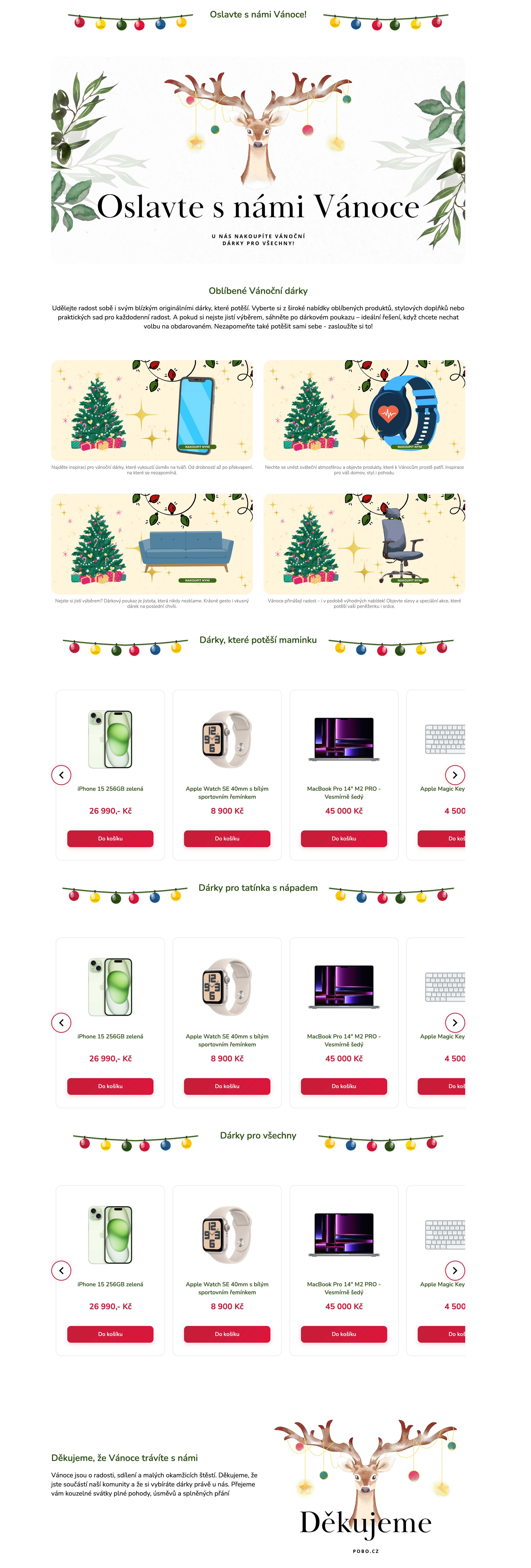 Navíc už jsou dvě Vánoční landing pages plně připravené, můžete je hned použít jako inspiraci nebo základ pro vlastní sezónní stránku.