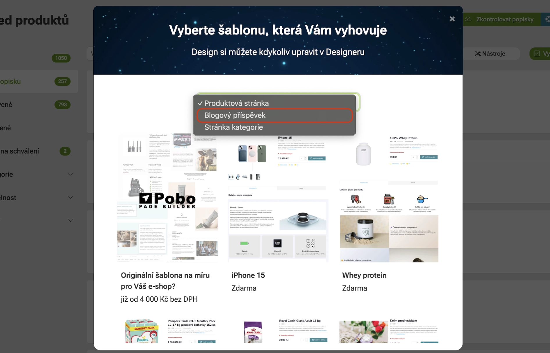 Nejdříve u obsahu zvolte možnost Vytvořit popisek a následně klikněte na Vybrat šablonu. V horním menu následně vyberte sekci Blogový příspěvek. A otevře se vám nabídka ve které najdete Valentýnskou šablonu :)