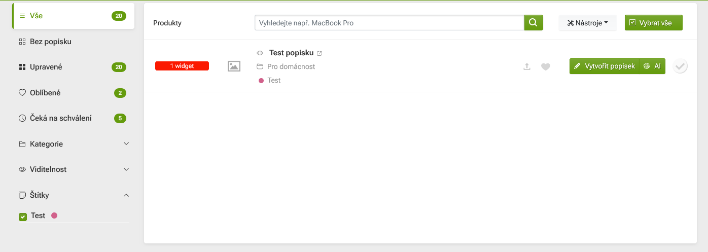 Zároveň zde i vidíte u kolika produktů je štítek aktuálně použit